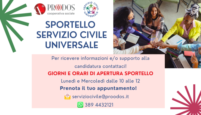 Proodos – Società cooperativa Sociale, seleziona operatori volontari da impiegare nei progetti e sulle sedi di attuazione indicati nelle schede di sintesi nella sezione PROGETTI.
